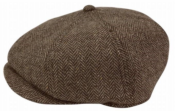 8枚はぎタイプの中では小ぶりで、ボリウム感のないハンチングです。少し縦長で、頭頂部にボッチが付いています。